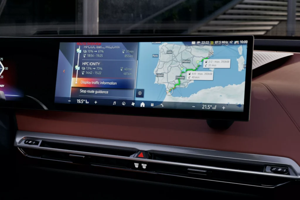 BMW iX xDrive45 dapat menempuh jarak hingga 602 km¹ dengan sekali pengisian daya penuh, tergantung kondisi jalan dan gaya berkendara.